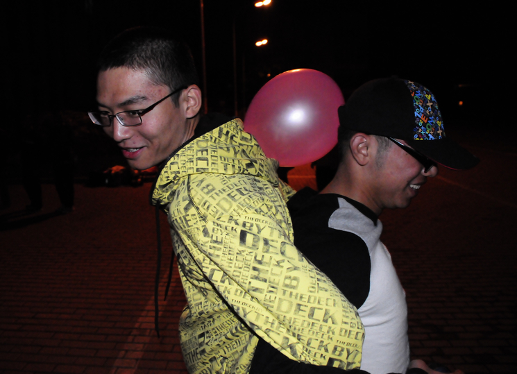 户外游戏环节将整个活动拉开了序幕。“拥挤公交车”、“双龙戏珠”、“泡泡糖”等小游戏陆续登场。在明亮的月光下,生物站前的空地上充满了欢声笑语。纸质“公交车”上“乘客”手忙脚乱,还未到终点“公交车”便已经不幸报废;两人背靠背夹起的气球在跑动过程中顽皮地溜走;一声令下,大家慌忙贴作一团,仅余某学长无语落单……在跑动的身影中、在惩罚的歌声中、在朦胧的月光中,一切皆美好。