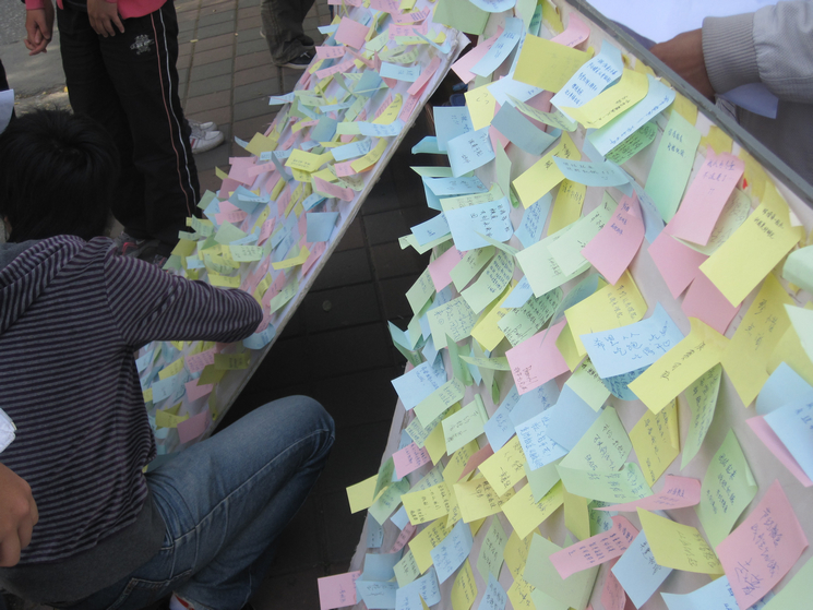 路人在现场写寄语
