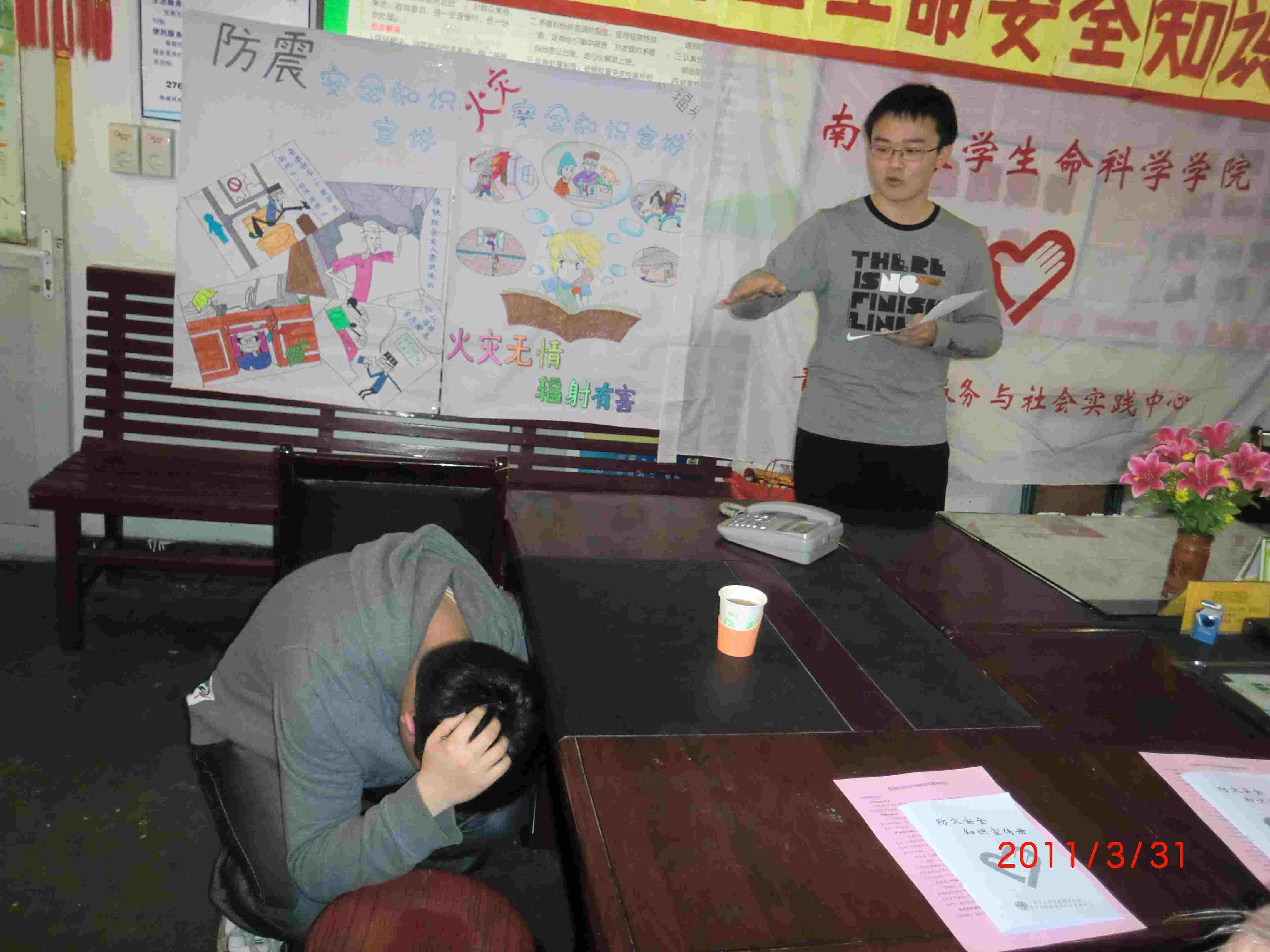 2011年3月31日下午,生科院志愿者服务部十四名志愿者深入同富里小区对居民进行了一系列的安全知识宣讲,现场气氛热烈,好评如潮。
