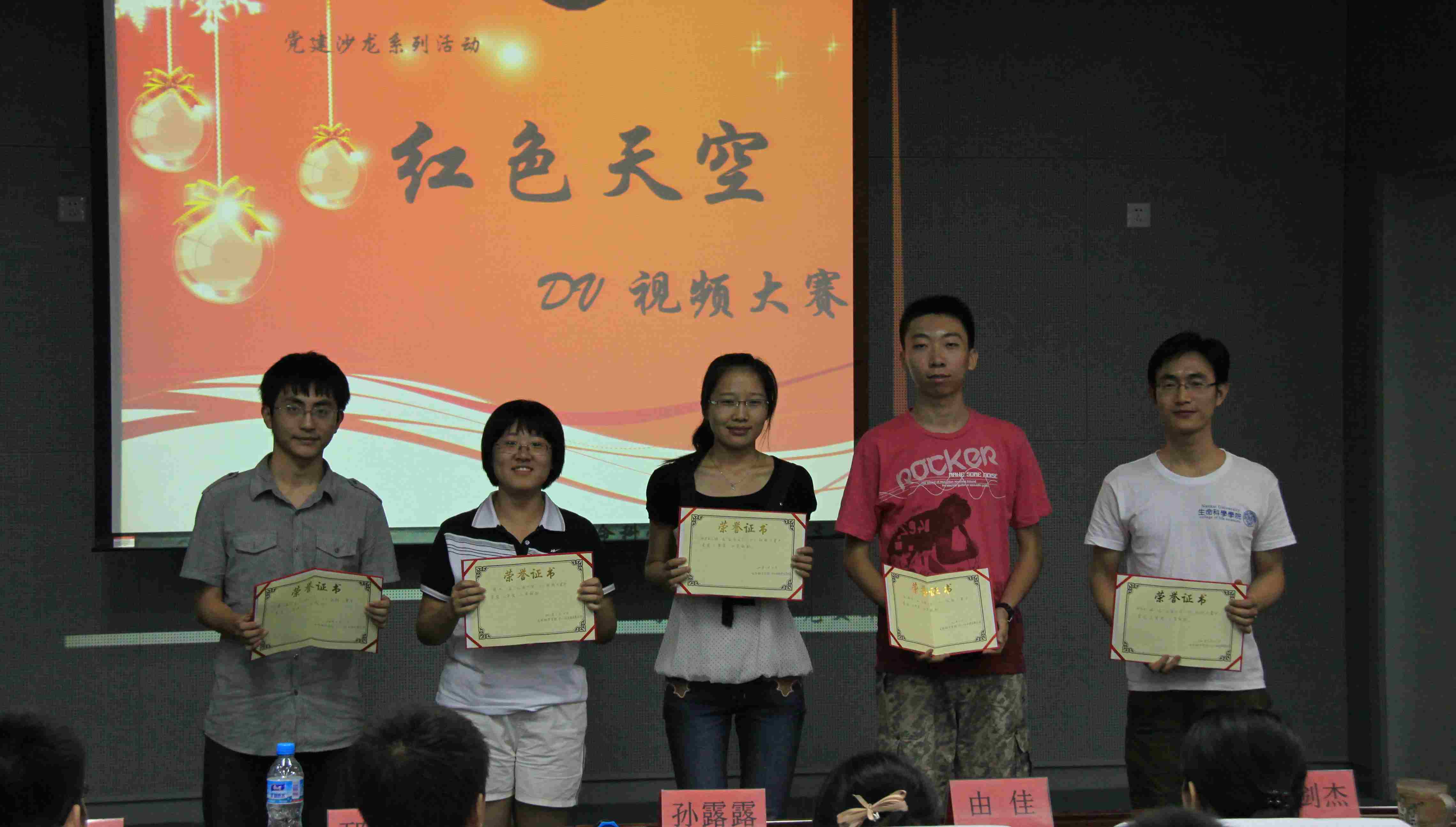 6月10日晚,生科院报告厅内一片温馨欢乐的景象,“红色天空DV视频大赛”精彩纷呈。大赛以yl7703永利集团第22期学生业余党校5个小组为单位,以各组所拍摄的公益广告展示为主体上演。生科院08级辅导员孙露露、09级辅导员邵剑杰、10级辅导员由佳、硕士生第二党支部书记邴铁军及研究生会主席贾正虎出席并担任大赛评委。