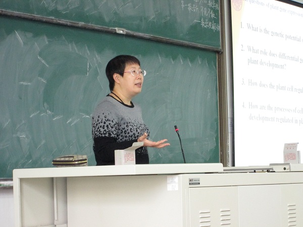 王宁宁教授首先简要介绍了本专业的师资力量、科研方向以及承担的各种科研项目。随后的讲座中,王教授通过对于植物的叶片衰老机制的研究,向同学们讲述了一个完整的科学故事,形象的展示了科学研究的过程和思维,同时,还通过生动的例子向同学们解释了分子生物学在植物中的工作方式和作用特点,充分调动了同学们对于知识的渴望和积极性。王宁宁教授还对目前热门的转基因问题提出了自己的看法,让同学们更深入的理解了现代科学在人类发展和自然平衡之间发挥的重要作用。