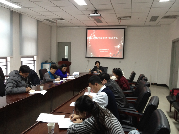 会上,吴秀英首先传达了学校2013年工作部署会精神,并结合学校2013年工作要点部署了2013年生科院党建工作计划,提出了学院党建工作的总体要求,随后,吴秀英从六个方面展开,对学院的党建工作提出了要求,一是加强基层党组织的思想建设,以深入学习宣传贯彻落实党的十八大精神为主线,结合落实校第八次党代会精神和公能素质教育纲要,丰富支部学习内容和形式,加强学生思想政治教育,抓好教工思想政治工作,切实将十八大精神贯彻到学院教学、科研、日常管理等各项工作中去;二是创新基层党组织党建工作,健全和巩固创先争优的长效机制,加强党员、党员干部、入党积极分子的教育培训。坚持组织生活会制度,重视吸收中青年骨干教师加入党组织,尤其注重发展“双高”人员入党;三是改进工作作风,开展以“为民、务实、清廉”为主要内容的党的群众路线教育实践活动”,结合生科院实际,深入调研、改进工作作风,密切联系群众,提高工作效能;四是认真总结2011-2012学年的“创最佳党日活动”并制定下一学年的活动计划;五是将宣传工作作为支部工作的重要内容,以培育和践行社会主义核心价值观为重心,及时宣传报道各项活动,弘扬主旋律,充分发挥宣传这一精神阵地鼓舞先进、凝聚人心的作用;六是加强反腐倡廉建设,坚持院务公开、党务公开制度,加强廉洁自律的教育、监督、检查。
