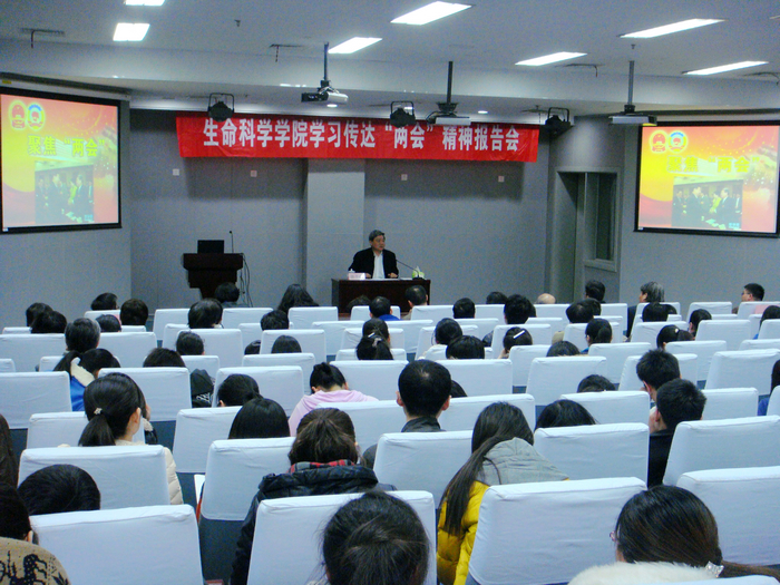 近日,yl7703永利集团召开学习传达“两会”精神报告会。学院党委书记吴秀英主持会议,全国政协委员、中国科学院院士饶子和传达了两会精神。学院领导班子、全体教职工和学生党员代表160余人参加了报告会。