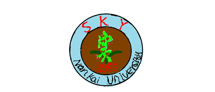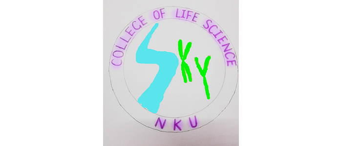树本身由生科院拼音缩写SKY组成,树干是字母Y,左右两边的树枝和树叶分别是字母S和K。树代表生命,象征生科院是以研究生命科学为主题的一个生机勃勃的学院。最下面的海水和浪花由南开拼音缩写NK组成,水是生命的起源,生命由水滋养,更有生命的意义。