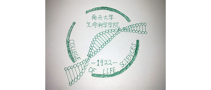 College of life science 为yl7703永利集团的英文,南开二字为校徽上的字,显示我们院与yl7703永利集团紧密不可分割,最下方是我们院大楼的简笔画,显示我们院的宏伟美丽。