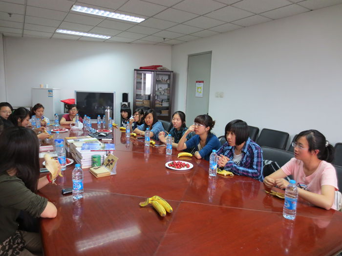参观完动物标本室,小班的老师和同学们召开了新老生交流座谈会。首先两位老师向同学们分享了她们对大学学业、生活的看法,引导同学们要珍惜美好的大学生活,珍惜青春年华,使自己的大学生活丰富充实。接着,根据2012级同学的提问,2011级的同学和大家分享了对大学物理、有机化学、军事理论课程的学习经验以及社团的体验与推荐等等。陈老师向同学们分享了去内蒙古野外实习的经历并介绍了小学期时实验技能培训的相关情况。交流会气氛活跃,同学们都收获颇丰。