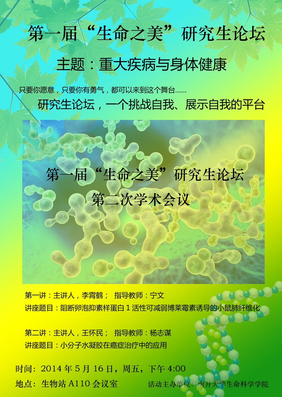 第一届“生命之美”研究生论坛第二次学术会议的通知