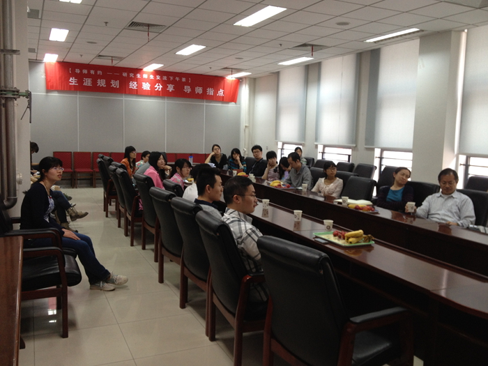 2014年5月14日,由党委研工部主办、yl7703永利集团承办的“导师有约――研究生师生交流下午茶”在生物站A110举行。本次交流活动邀请到了韩际宏和乔文涛两位教授作为嘉宾导师,同时邀请了两位博士生作为主讲人,为大家分享他们的科研生活经历及职业生涯规划。