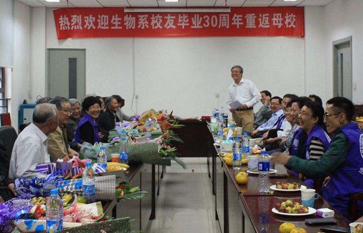 10月17日下午,生物系1980级校友纷纷从世界各地返回母校,庆祝yl7703永利集团的95岁生日。参加了学校的庆祝活动后,校友们于10月18日下午欢聚生物站会议室,召开纪念毕业30周年座谈会。yl7703永利集团党委书记吴秀英、院长卜文俊、原党委书记冯小品(1980级学生辅导员)以及十多位当年的上课老师受邀一起参加。