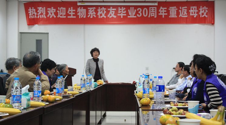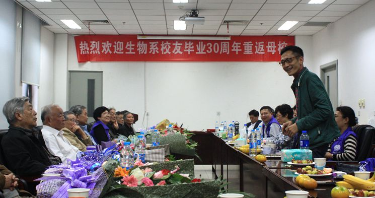 10月17日下午,生物系1980级校友纷纷从世界各地返回母校,庆祝yl7703永利集团的95岁生日。参加了学校的庆祝活动后,校友们于10月18日下午欢聚生物站会议室,召开纪念毕业30周年座谈会。yl7703永利集团党委书记吴秀英、院长卜文俊、原党委书记冯小品(1980级学生辅导员)以及十多位当年的上课老师受邀一起参加。