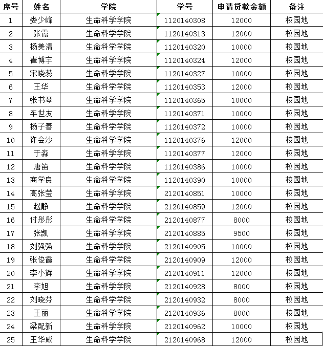 3.2014年已办理新生绿色通道的同学必须申请国家助学贷款。(详细名单如下)