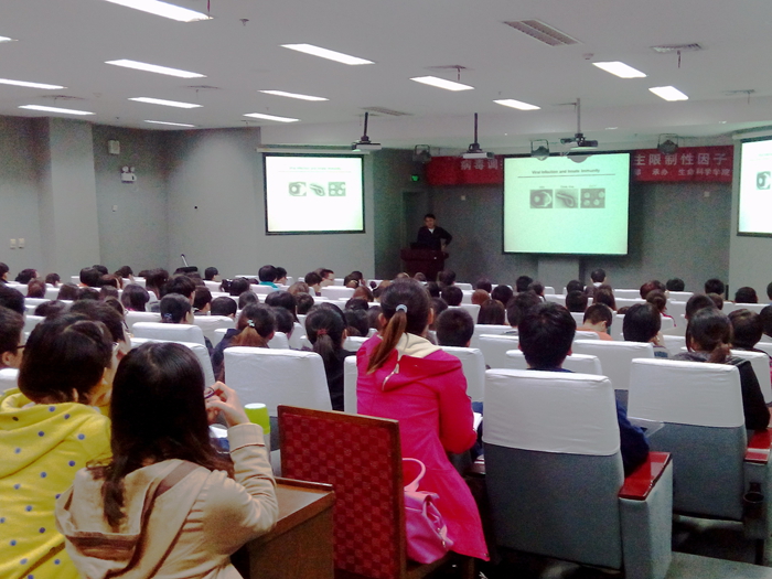 10月28日下午,由yl7703永利集团党委研究生工作部主办,yl7703永利集团承办的研究生学术周末在yl7703永利集团生物站报告厅举行。本期讲座邀请到美国伊利诺大学的何斌副教授和加拿大麦吉尔大学的梁臣副教授,他们针对病毒与宿主的相互作用进行了主题分别为“Innate Immunity:From Which Bug Tolls”和“Host Restriction of HIV-1 Infection”的学术讲座。