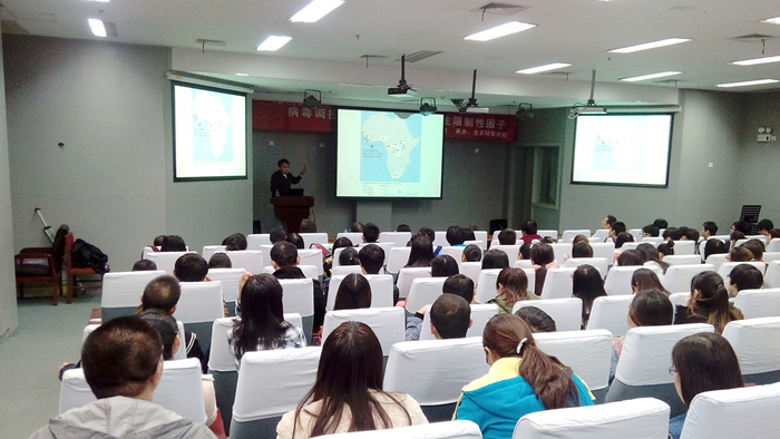 随后现场的老师同学就报告内容提出了相关学术问题,与两位教授进行了积极的探讨。对于同学们提出的“病毒针对宿主限制因子的进化”等问题,两位教授均做出了详细认真的解答。