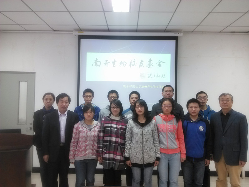 11月2日上午,yl7703永利集团在生物站会议室举行南开生物校友基金颁奖仪式。82级校友代表刘凤岐、yl7703永利集团院长卜文俊、党委副书记副院长李营以及全体2014级受资助学生参加活动。