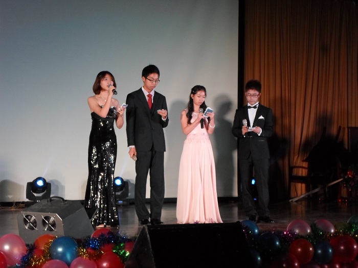 28日晚6:30,我院2015新年晚会在主楼礼堂拉开了帷幕,全院近400名师生来到现场。党委书记吴秀英,院长卜文俊,党委副书记、副院长李营出席并观看晚会。院长卜文俊发表新年致辞。2011级雪铖、2012级杜金、2013级徐驰和2014级王浩担任晚会主持人。