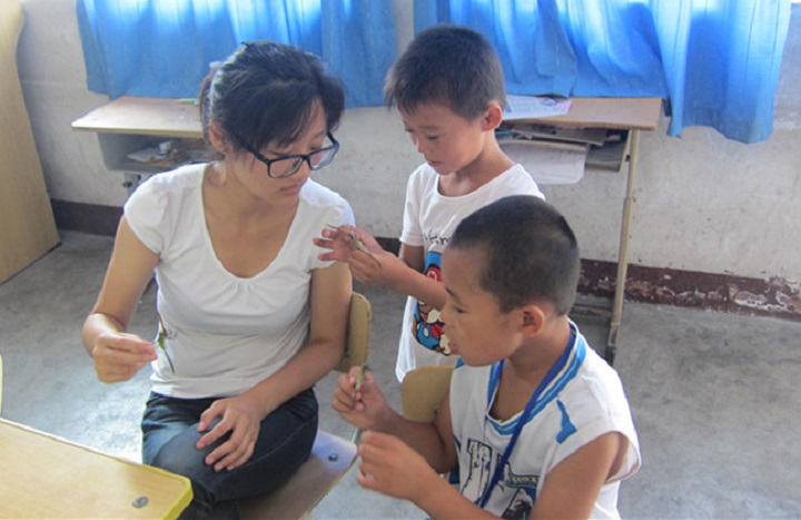 尤记得初识他们时,他们还有些不好意思,躲在门口的墙壁旁看着我们叽叽喳喳的议论,“这个是去年来的那个大姐姐!”“那个好像去年也来过呀!”“这个哥哥没见过,应该是今年新来的!”不一会孩子们就抛下了矜持在院子里乱窜了起来,更有去年参加过支教课程的孩子们一上来就直奔熟识的姐姐们,热络的聊起天来。一下子院子内就充满了孩子们爽朗的笑声,我们也融进了他们的天真快乐中。六天里,我们为孩子们上了科技课,手工课,思想品德课。让我们诧异的是,他们的小脑袋瓜里竟然装着那么多新鲜的知识,与我们预先对他们的估计有着一定的出入。为了让他们学到更多,每个晚上我们都针对转天的课程重新调整安排。孩子们课上的踊跃和积极,让我们很欣慰我们做的努力都没有白费。