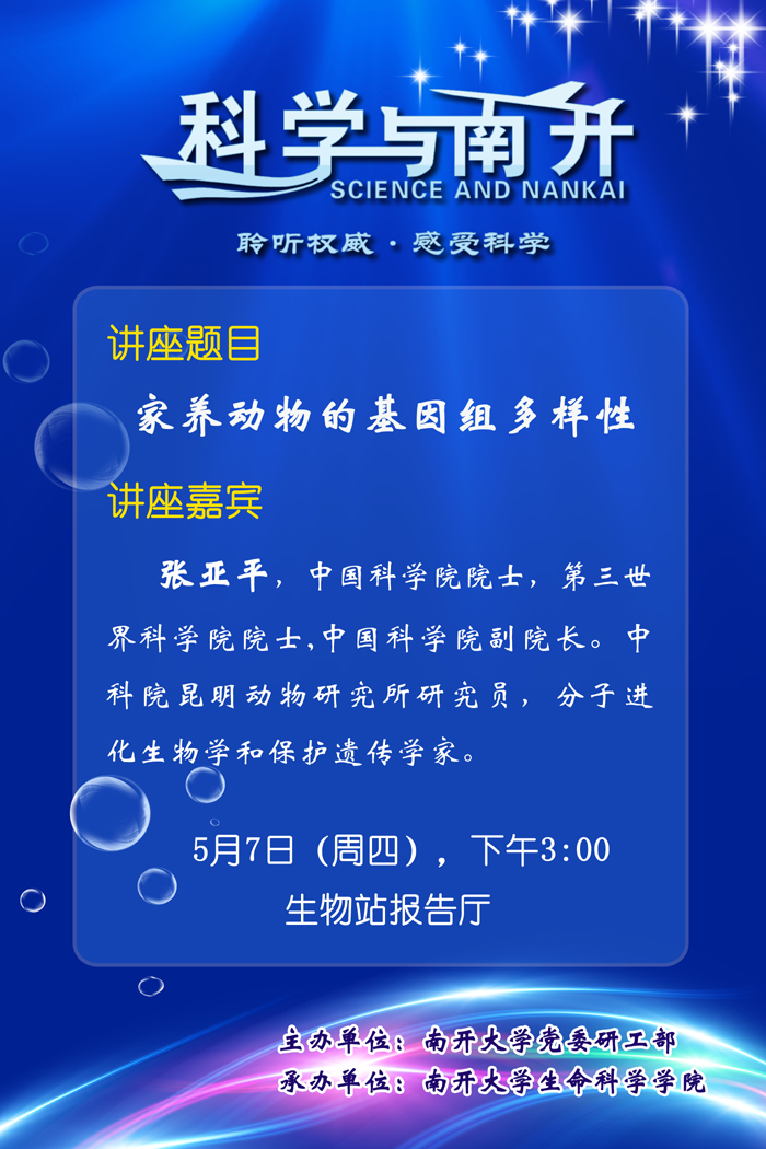 讲座人简介:张亚平,中国科学院院士,第三世界科学院院士。中国科学院副院长。中科院昆明动物研究所研究员,分子进化生物学和保护遗传学家。
