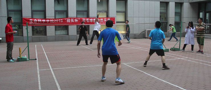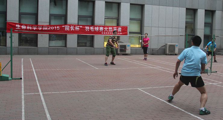 5月18日,2015年生科院“院长杯”羽毛球赛小组赛第六场准时在生物站开战,对阵形势是“行政队”VS“No Delay”。