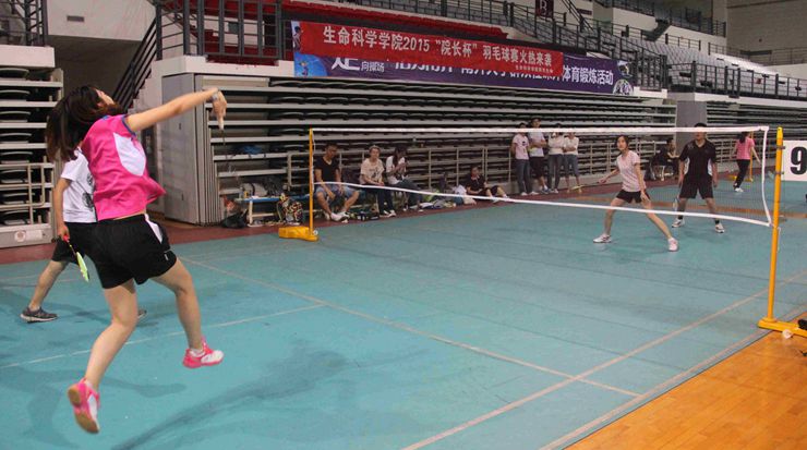 5月20日,2015年生科院“院长杯”羽毛球赛小组赛最后一场准时在体育馆开战,对阵形势是“共用电子队”VS“A303队”。
