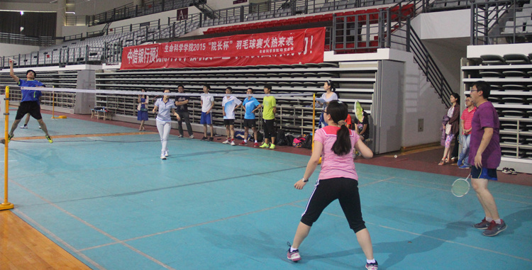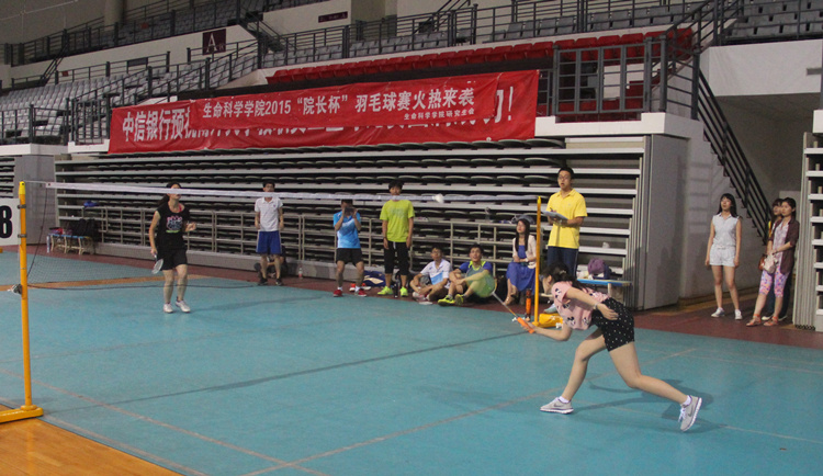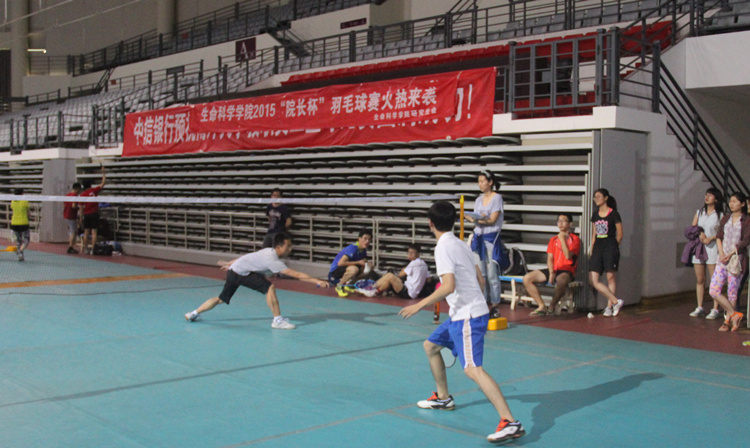 6月4日,2015年生科院“院长杯”羽毛球赛半决赛第二场准时在体育馆开战,对阵形势是“羽球兄弟队”VS“No Delay队”。