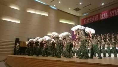 经过紧张的排练,yl7703永利集团军训团于9月23日晚7:30左右站在学生活动中心田家炳音乐厅的舞台上,向大家展示20连的风采。