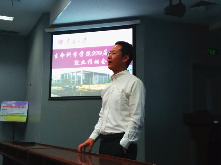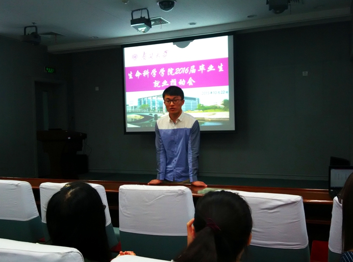 首先,毕业班辅导员江毅老师从yl7703永利集团就业基本情况、工作举措及就业质量分析入手,使同学们对我校就业工作现状有了初步的了解。随后针对yl7703永利集团近三年内毕业生的毕业去向、单位性质、地域分布、工资薪酬等情况进行了介绍,并对生物学科当前就业形势进行了具体分析,为16届毕业生在就业方面提出了具体的指导意见。研发、深造、教师、销售、管理、创业……每一位同学都在老师的分析中深入思考,寻找着适合自己的就业方向。