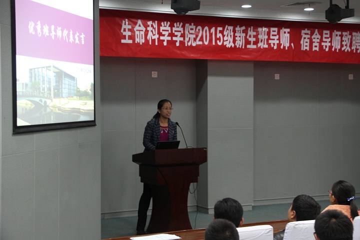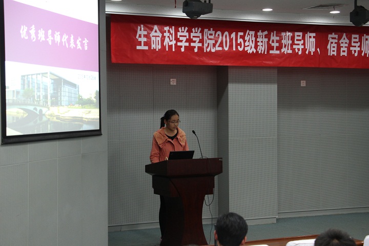 同时,2014级本科生优秀宿舍导师韩丽芳也向新一届宿舍导师传授了自己的经验,并向大一同学提出要学会找出舍友的闪光点,培养良好的习惯并以积极向上的心态应对大学生活的希望。