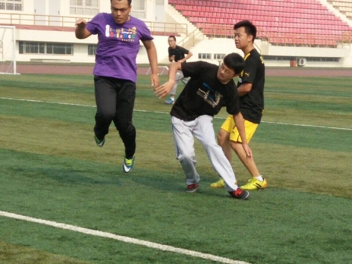 作为足球爱好者的我欣喜激动也带着迷惘与手足无措――人员哪里凑?队服怎么办?战术与配合又该如何?在冷静下来与部长取经后,球队在我“无耻”劝说下终于勉强齐了,决定以院衫为我们的暂时队服,通过一次小规模的训练活动,相互有了大概的认识与位置分配,这时才终于感觉到了一点底气。