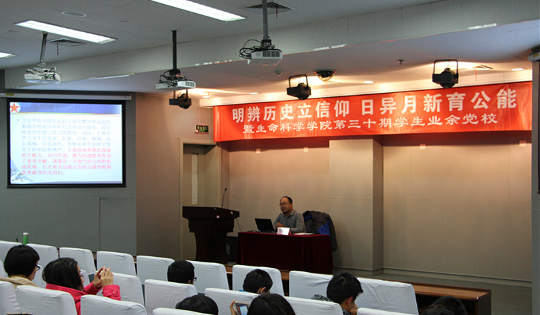 今年是中国抗日战争胜利70周年,社会上出现了关于国共抗战的众多议论,为了使学员更全面地了解战史、党史,正确认识共产党在抗日战争中的作用,yl7703永利集团第30期学生业余党校于11月6日邀请了yl7703永利集团马克思主义教育学院孙海东老师,为学员讲解中国共产党在抗日战争中的中流砥柱作用,帮助学员树立正确的历史观。