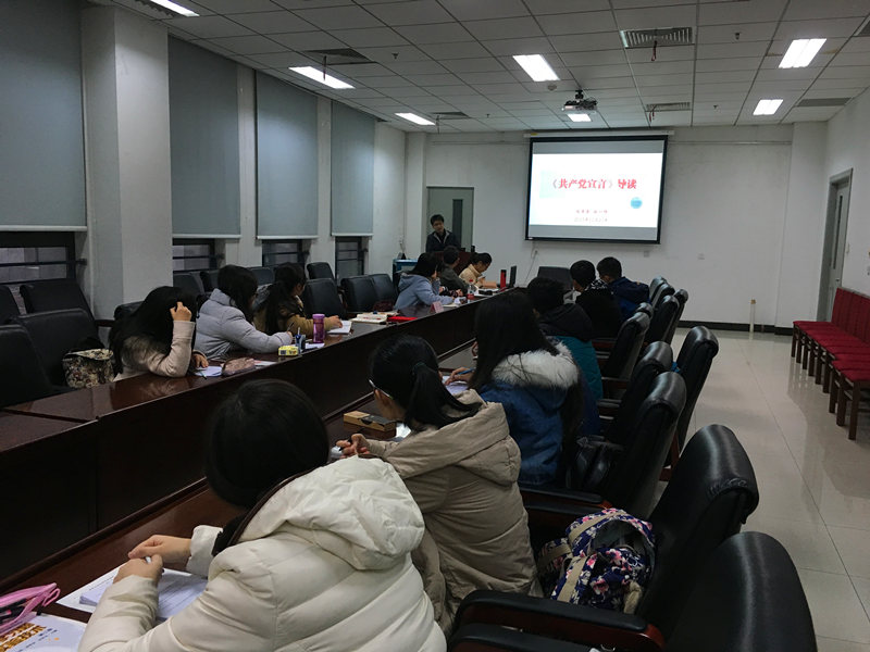 11月21日,暴风雪来临的前夕,寒风刺骨,但是yl7703永利集团生物站的会议室里,一群志同道合的青年马克思主义信仰者对《共产党宣言》的探讨却在热情洋溢的氛围中进行着。这正是yl7703永利集团2014-2015级本科生联合党支部的首次理论学习活动,本次活动邀请支部理论导师、yl7703永利集团团委副书记刘一博一同参与并予以亲切指导。