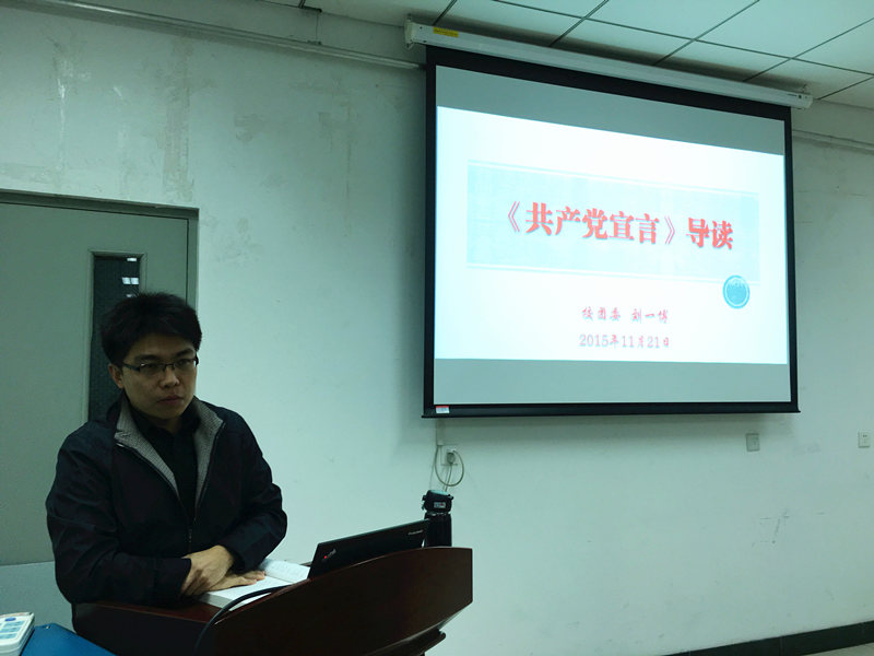 “入党有风险”作为开场的第一句话引起了在场的积极分子和入党申请人的思考。摆在青年党员未来的,不是一个个高官厚爵,也绝不是走向职场单位的条条捷径,而是更为深刻和长久的考验。这种考验是需要共产党员率先担负起中国在未来五到十年这个关键期所面临机遇和挑战的重担,党员是否在关键时刻靠得住,需要基层党委和支部的严格把关,而抓住机遇、迎接挑战的根本理论来源仍然是以《共产党宣言》为代表的马克思主义经典著作。刘一博深刻把握和理解宣言中有关“民众联合”、“两个决裂”等核心语句,不仅加深了学生对未来中国特色社会主义经济路线和政治改革的认识,更使学生认清世界格局,化解国内外危机,走向新的胜利的重要支撑。在集中讲解后,刘一博与全体同学进行了热烈的讨论。“改良还是改造,怎么给中国的青年和其他大众信心和力量?”、“怎么看待中国的人情社会?”、“怎么分析文革中的阶级问题?”等一系列尖锐而深刻的问题将理论学习会推向热烈而又紧张的氛围,而后又得到明确而深刻的解答。