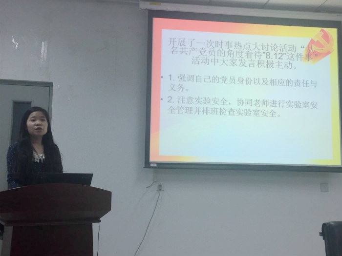 首先,王兰总结了前一阶段学院各个党支部学习《准则》、《条例》的情况。各个学生党支部在学院的统一部署下,分别就《准则》、《条例》开展了集中学习,观看了视频,并提交了学习小结;广大党员再一次从思想意识上严肃了党规党纪,强化了政治纪律。