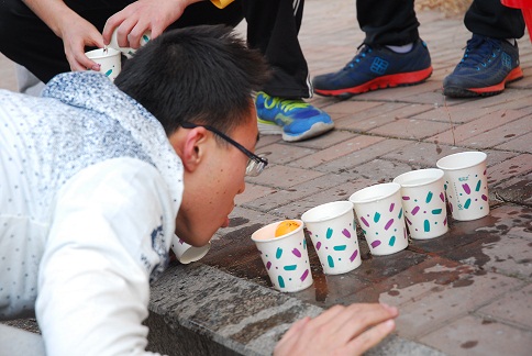 2016年3月27日下午,我院生物技术专业部分学生共聚天南街,开展了趣味运动会活动。活动采取小组赛制,每组4人,两男两女。共设置:摸石过河、智传呼啦圈、赶"猪"跑接力、夹乒乓球、传沙包、沙包射击对抗赛、鼻子耳朵拔河赛七项运动项目,充分考验了同学们的团队协作能力和身体素质。