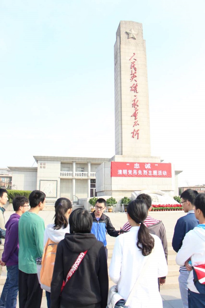 4月4日上午8时45分,学生们到达了位于西青区的烈士陵园,陵园的负责人员接待并向同学们介绍了陵园的简要情况。学生会学习部部长程曲汉带领干事们在平津战役纪念碑前三鞠躬,表达了同学们对为国捐躯的烈士们的深切哀思和崇高敬意。