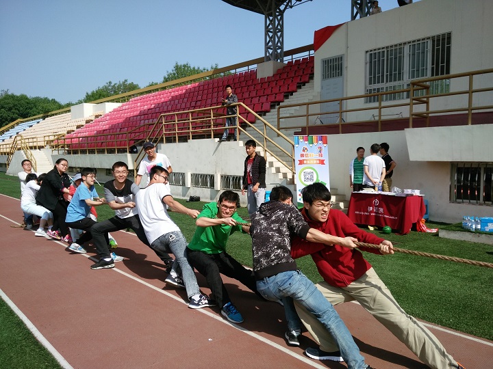 拔河作为传统项目率先开始比拼。各年级学生队、教职工代表队的每个选手都紧咬牙关,在激情与力量的碰撞中拼尽全力想要取得最终胜利。观众也被紧张的气氛感染,为选手们加油呐喊。最终,2013级代表队技高一筹,勇夺冠军。