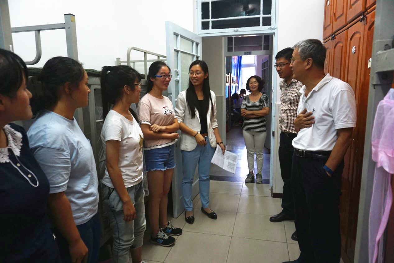 下午,院长卜文俊、副院长田在宁、党委副书记副院长李营、团委书记陈万胜以及2016级本科生辅导员王一涵等代表学院前往新生宿舍看望刚刚到来的新同学们。老师们从宿舍设施的舒适程度,新生的心理状态以及对接下来的生活建议等多个方面表达了亲切的慰问,并与尚留在宿舍内的学生家长们进行了亲切的交谈,表达了学院对新生的关心和重视,让家长放心。