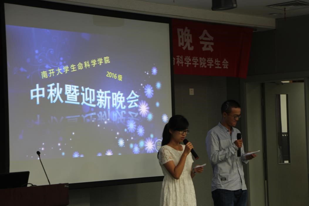 艰苦的军训生活刚刚画上句号,中秋佳节便尾随而至。为庆祝2016级新生在南开度过的第一个中秋节,9月15日晚7点整,由院学生会主办的2016级中秋暨迎新晚会在生物站报告厅隆重举行。本科生辅导员王一涵,军训指导员曹艺严、朱子坤,院学生团总支书记程曲汉以及多个组织、部门的负责人和成员出席了晚会,与全院157名新生共庆中秋佳节。