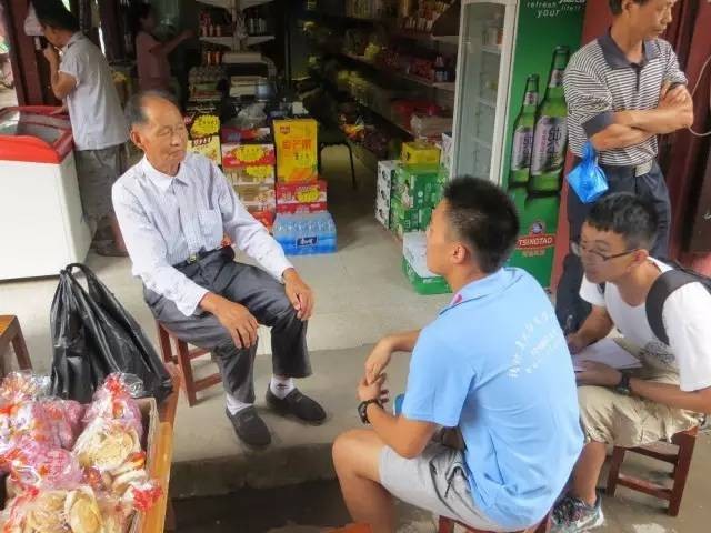 在镇上,队员们探访到了年逾70 的胡金章爷爷,经了解他的父亲参加了长征,而她本人也是抗美援朝的战士。他用切身的见闻向实践队队员讲述了那段不平凡的岁月,队员们深受感动。80年转眼消失于几代人的眉间,但是长征精神,却始终在人们的心中。