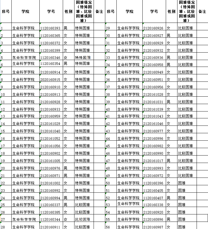 生科院2016级研究生家庭经济困难学生名单: