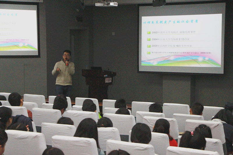 李彪以“2004年马加爵213凶案”为例,针对当下大学生的心理特点以及易出现的心理问题,向大家强调心理健康在高校教育中的重要地位和心理防护员的重要职责。他还借“排雷兵”、“传声员”、“陪伴者”等形象的比喻,让大家更好地了解心理防护员的工作方式及作用。培训过程中,他从心理防护员的产生背景到对心理防护员的职责与要求,从助人的态度与原则到如何识别各种心理问题等诸多方面,向大家由浅入深的介绍了大学生心理健康的相关知识及心理健康问题的预防和介入手段。