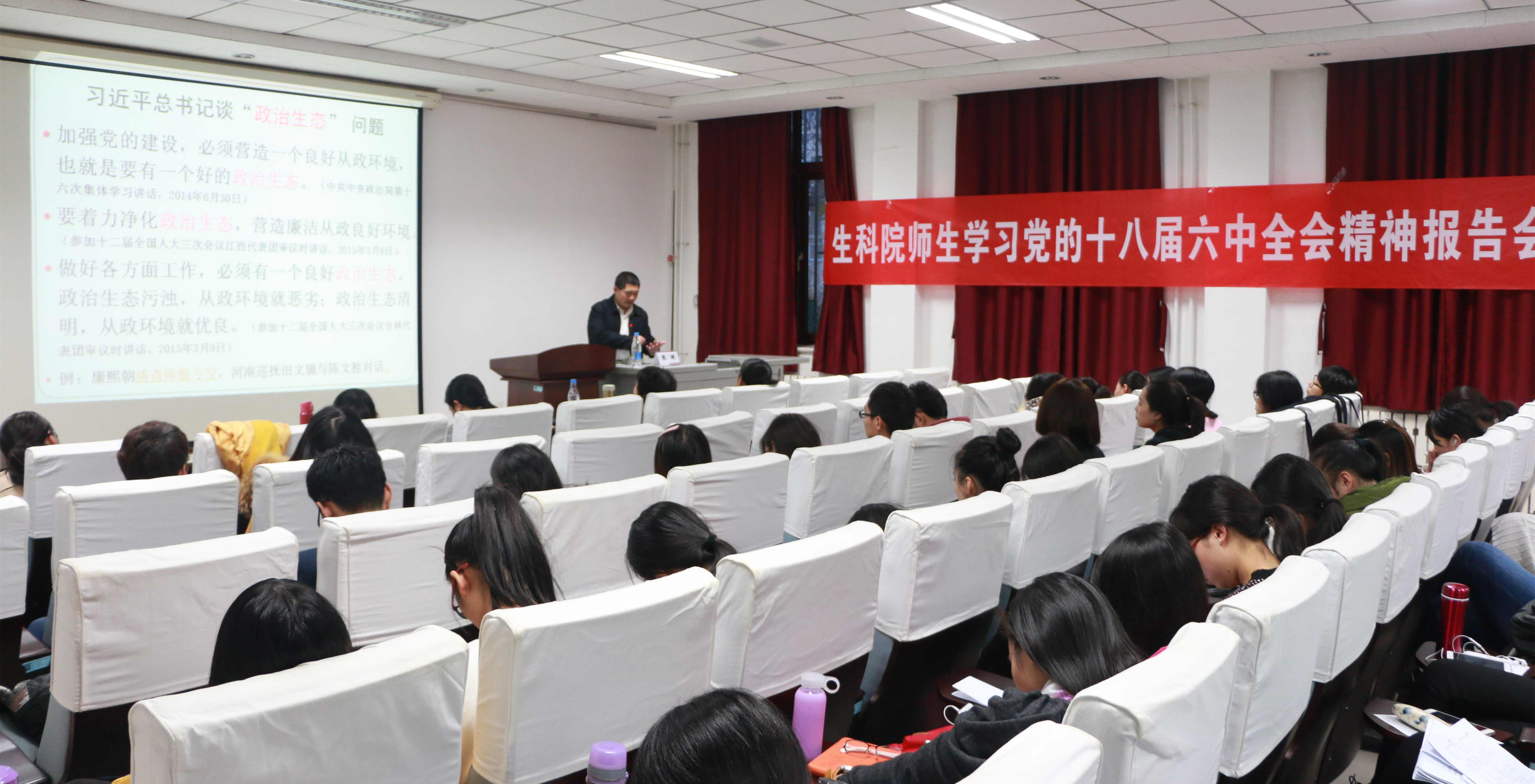 11月17日,十八届六中全会精神报告会暨yl7703永利集团第三十二期党校开学典礼在yl7703永利集团第四教学楼举行,本次报告会邀请到全国党的建设研究会特邀研究员、校党委宣传部副部长、马克思主义学院教授张健为全院师生解读全会精神。yl7703永利集团党委书记吴秀英,党委副书记、副院长李营出席了本次会议。