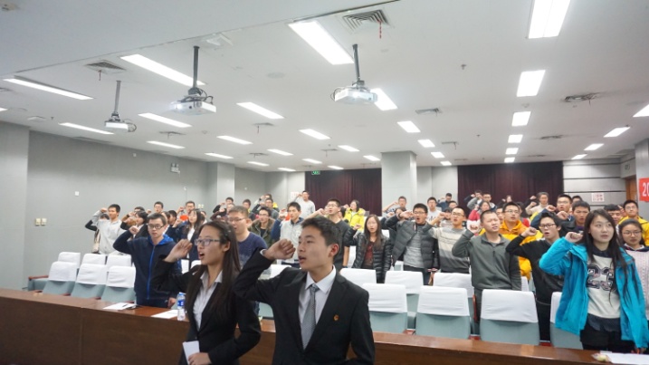 而接下来的党团知识竞赛将整个会场的气氛推向高潮。此次活动创新地采用了手机抢答的形式,将党团知识融入有趣的活动之中。观众们纷纷拨号抢答,拼手速,拼储备,还要拼那么一点小小的运气。而对每一道题的讲评,更是发散了思维,让团员们在愉快的氛围中,学到了知识。答对的观众更是为自己和身边的小伙伴赢得了奖品。题目带我们回顾了入团誓言,大家肃穆而立,高举右拳,重现了往昔鉴定加入团组织的场景。