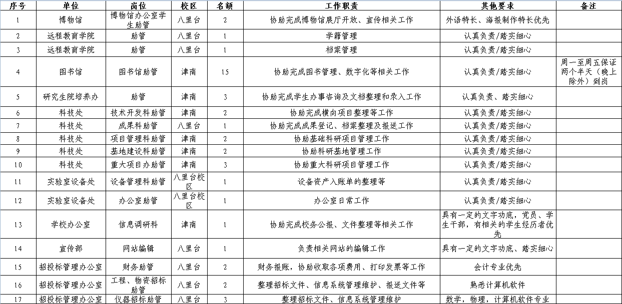 本次空缺的研究生助管岗位共43个。空缺岗位信息请见下图: