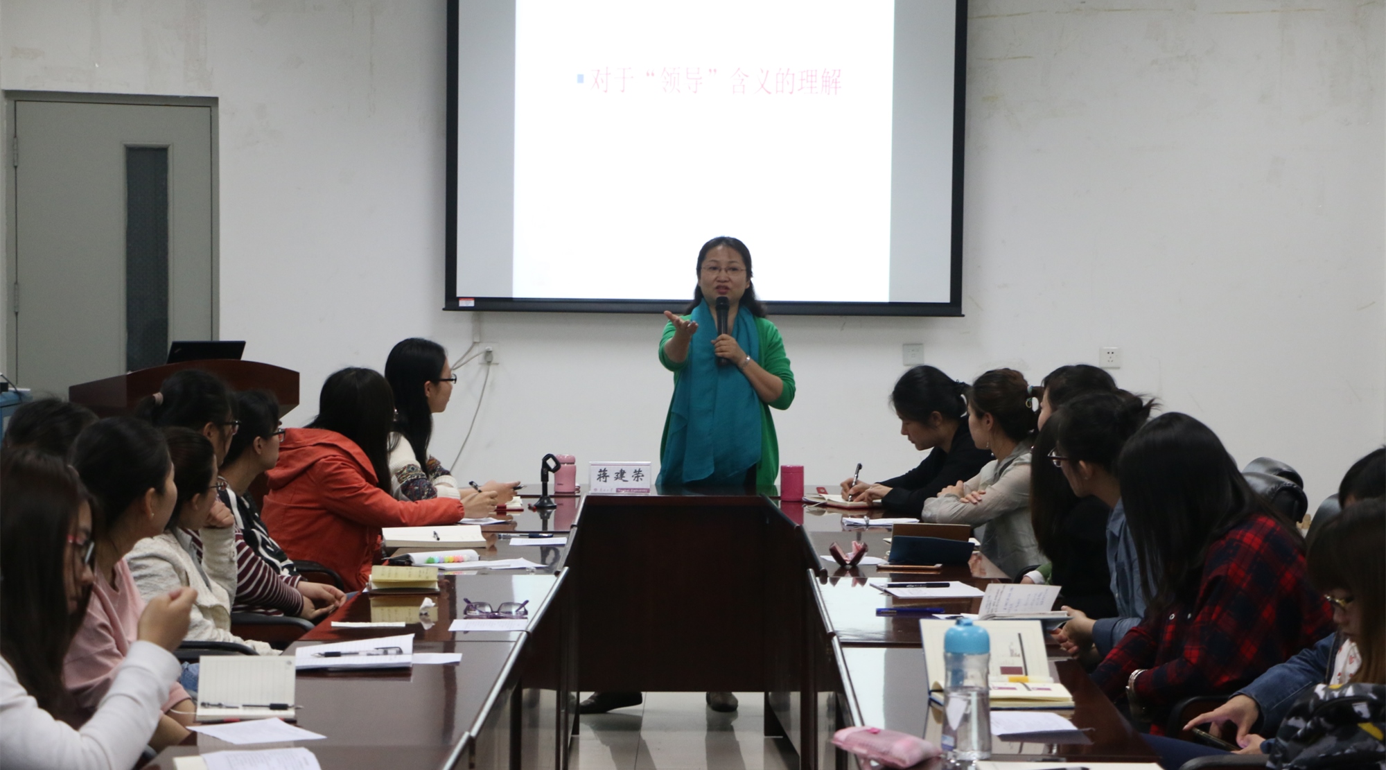 在培训会上,蒋建荣向在场的党员干部及党员明确了“领导”的定义,领导并非行为上的强制要求,而更多的是内心上的尊重与服从;指出了领导分为对自己的领导以及对组织的领导,并告诫全体党员同志,党员是集体中的一面鲜红的旗帜,无论是否身兼党内领导职务我们都努力培养自己的领导能力及模范作用,而提高自身领导力的根本要求就是要严格要求自己加强自身修养及能力水平即“打铁还需自身硬”;蒋建荣在领导的行为艺术方面指出,担任党员领导干部应该懂得授权,而不应凡事亲力亲为,着重加强团队的和谐建设、对团队成员的能力锻炼及对分工合作的合理化。在培训的最后,蒋建荣还向党员们分享了她对于共产主义的理解和她坚定的共产主义信仰,给党员们留下了深刻的印象。