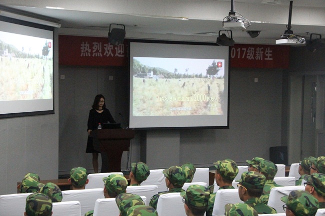 9月5日晚,数学科学学院赴陕西安康县神河镇暑期实践团成员杜婷婷在生物站报告厅为我院2017级全体新生进行了实践宣讲。