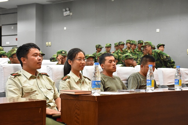 9月7日晚,我院2017级全体新生在生物站报告厅内参加了由生科院“铭公能志,铸强军魂”纪念建军90周年军歌合唱活动,军训团16连全体教官、指导员一同参加了活动。