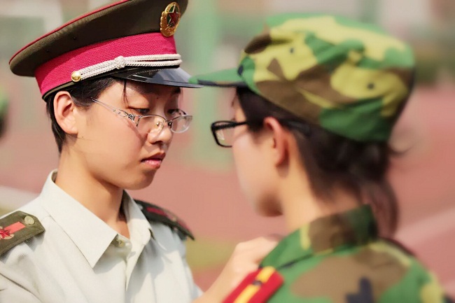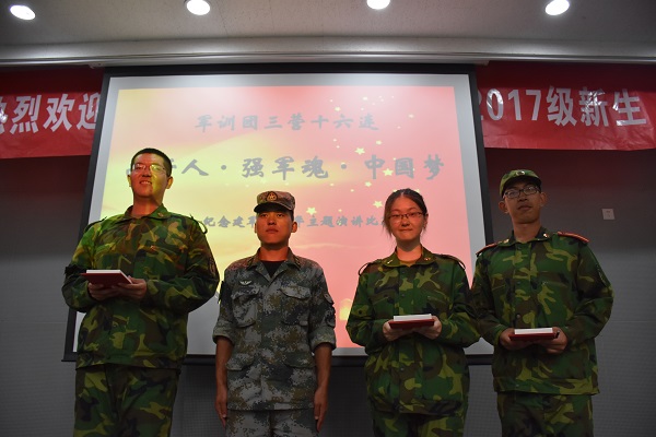 从8月30日下午的军训动员大会开始,绿色就成为了新生们生活的主题,十六连就成了大家共同的代号。从高考后闲适放松的暑假生活转变到严格艰苦的军训生活,是一个很艰难的过程。在教官、指导员和新生学员的共同努力下,新生们很快就适应了自己的角色。军容风纪、卫生、政工工作,每一个环节都在以崭新的面貌呈现。在9月3日的军容风纪大检查和9月5日的内务卫生大检查中,十六连都名列前茅,被评为“非常优秀”。在最终的军训汇演环节中,十六连以优异的表现获得了“优秀汇报表演科目”称号。