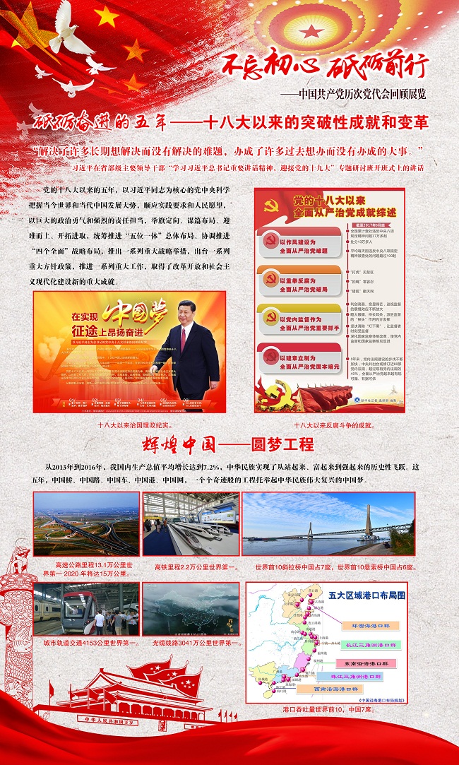 10月18日,学院党委组织学生党员在观看十九大开幕式之前,参观了本次展览。展览从开天辟地的中共一大说起,提炼了党的每次代表大会的主题和要点,介绍了会议举行的背景和意义,配以珍贵的历史图片。同时也介绍了十八届三中全会等在党的历史上具有转折性意义的会议,对于党的十八大以来的突破性成就和变革进行了详细介绍,从“圆梦工程”、“创新活力”、“协调发展”、“绿色发展”、“共享小康”、“开放中国”等方面回顾了这五年来,党和国家在以习近平同志为核心的党中央的领导下取得的辉煌成就。