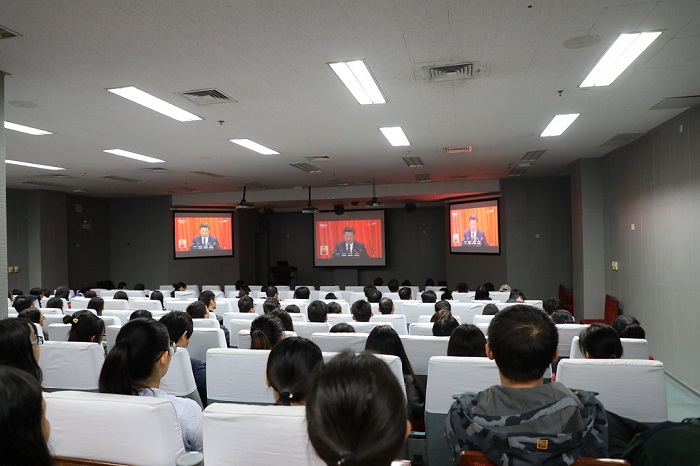 十九大开幕当天,校党委学生工作部党支部、yl7703永利集团本科生联合党支部共同在生物站A110召开“不忘初心,继续前进――庆祝党的第十九次代表大会胜利召开”组织生活会,一同观看十九大开幕会。学院党委按照学校党委统一部署,组织师生党员在生物站报告厅、会议室、各实验室集中收看了大会开幕式直播盛况。认真聆听和学习习近平同志代表党的十八届中央委员会所作的工作报告。会上,师生党员交流党代会历史与青年信仰,认真领会、及时学习会议精神,共同见证中国共产党发展历史上的又一座里程碑。