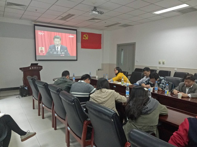 为进一步体会十九大深刻的内涵,十九大结束后,党支部邀请十九大精神宣讲团进入支部进行宣讲,并且定于每周日上午一同观看《不忘初心,继续前进》、《榜样》等纪录片,深入学习十九大精神。党员们一致表示要以高昂的斗志,饱满的精神状态,在各自的专业方面努力学习,以优异的成绩为十九大的胜利召开争光添彩。